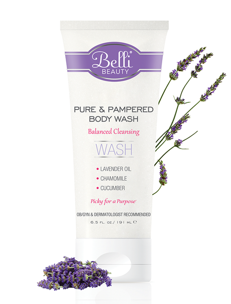 Pure & Pampered Body Wash from Belli Beauty cleanses skin thoroughly without stripping away beneficial oils. The formula is both teratology and Lactmed screened to ensure the safety of ingredients for all ages and stages. The formula is allergy tested, and free of parabens, phthalates, BPA and artificial dyes and fragrances.